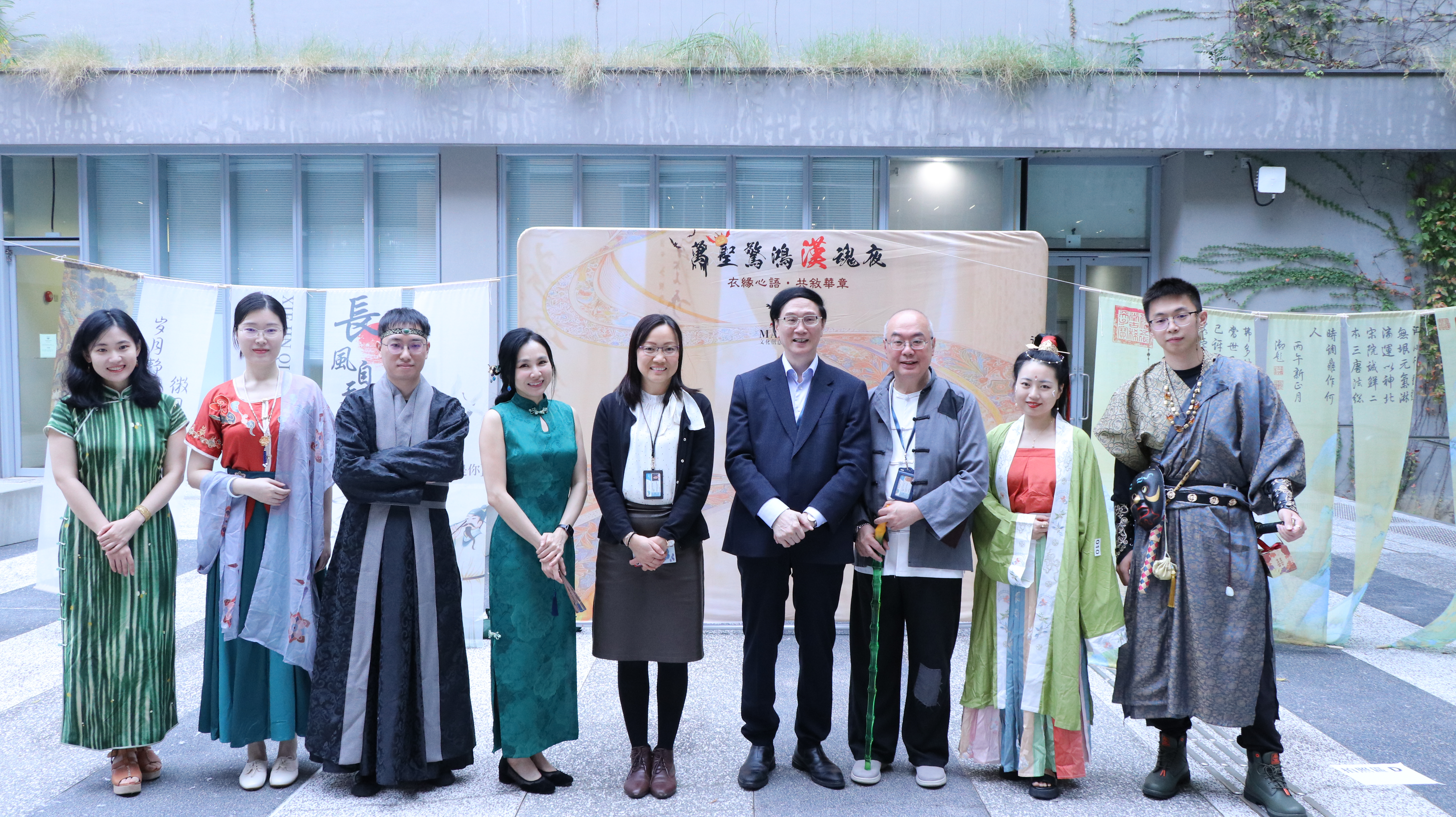 筹备过程中,由课程主任丘健恩博士全力支持、副课程主任张誉允博士统领的同学团队,巧妙运用课程所学,在汉服设计中融入古代“怪力乱神”元素,既保留传统服制精髓,又增添节庆趣味;拍摄场景更精心缀以文学典故,令经典诗文跃然眼前,充分展现文化转译之创意。 活动当日,师生们身着各色汉服,在精心布置的场景间流连取景。衣袂翩跹间,既见传统服饰之美,亦显文创设计之妙。有参与者笑称此乃“最雅致的万圣庆典”,更有教职员赞许活动让文献“活跃起来”。